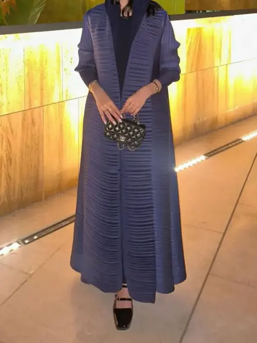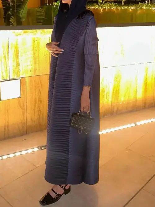 Midnight Ivory Pleated Abaya